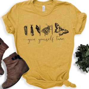 Butterfly Graphic shirts, Give yourself time positive womens motivational shirt