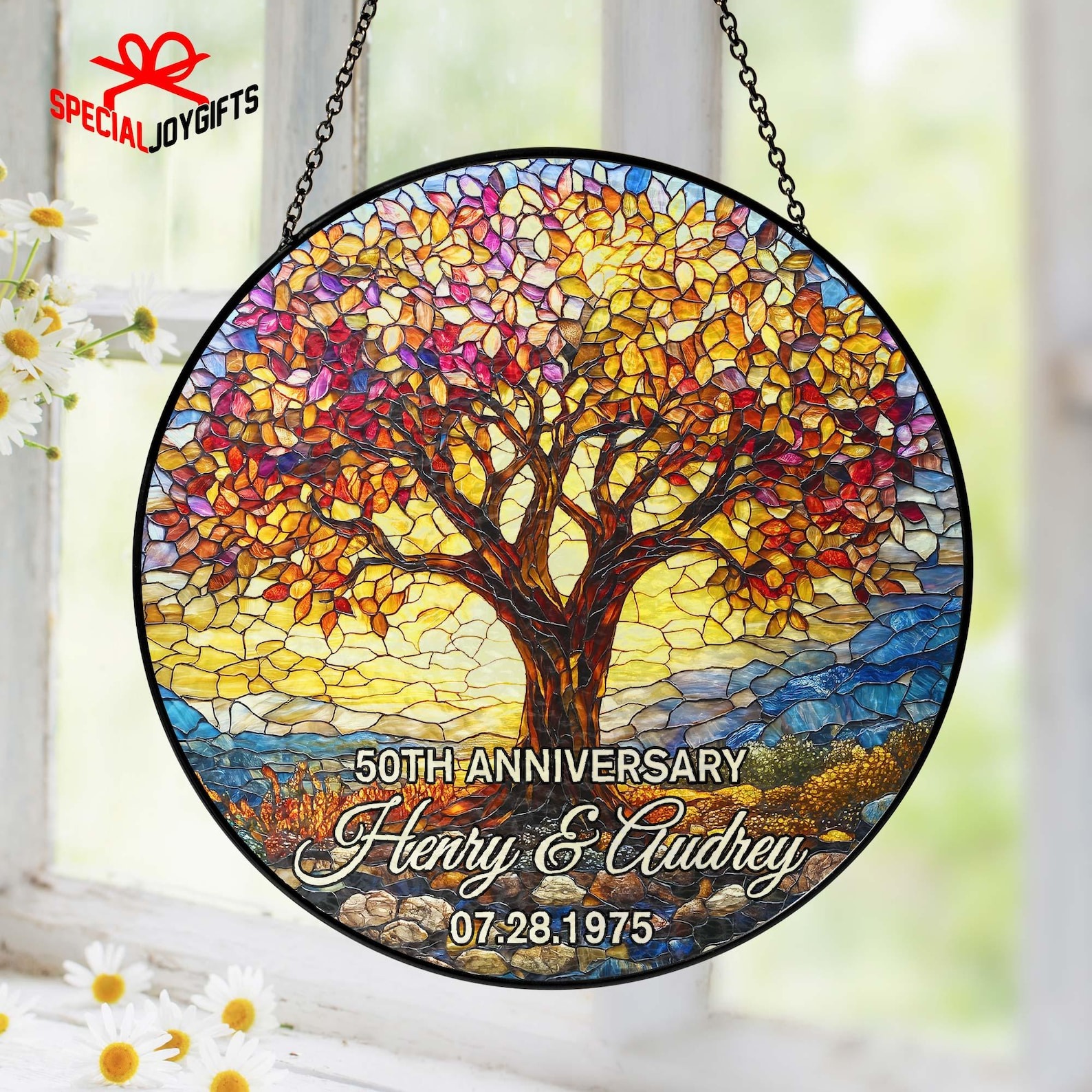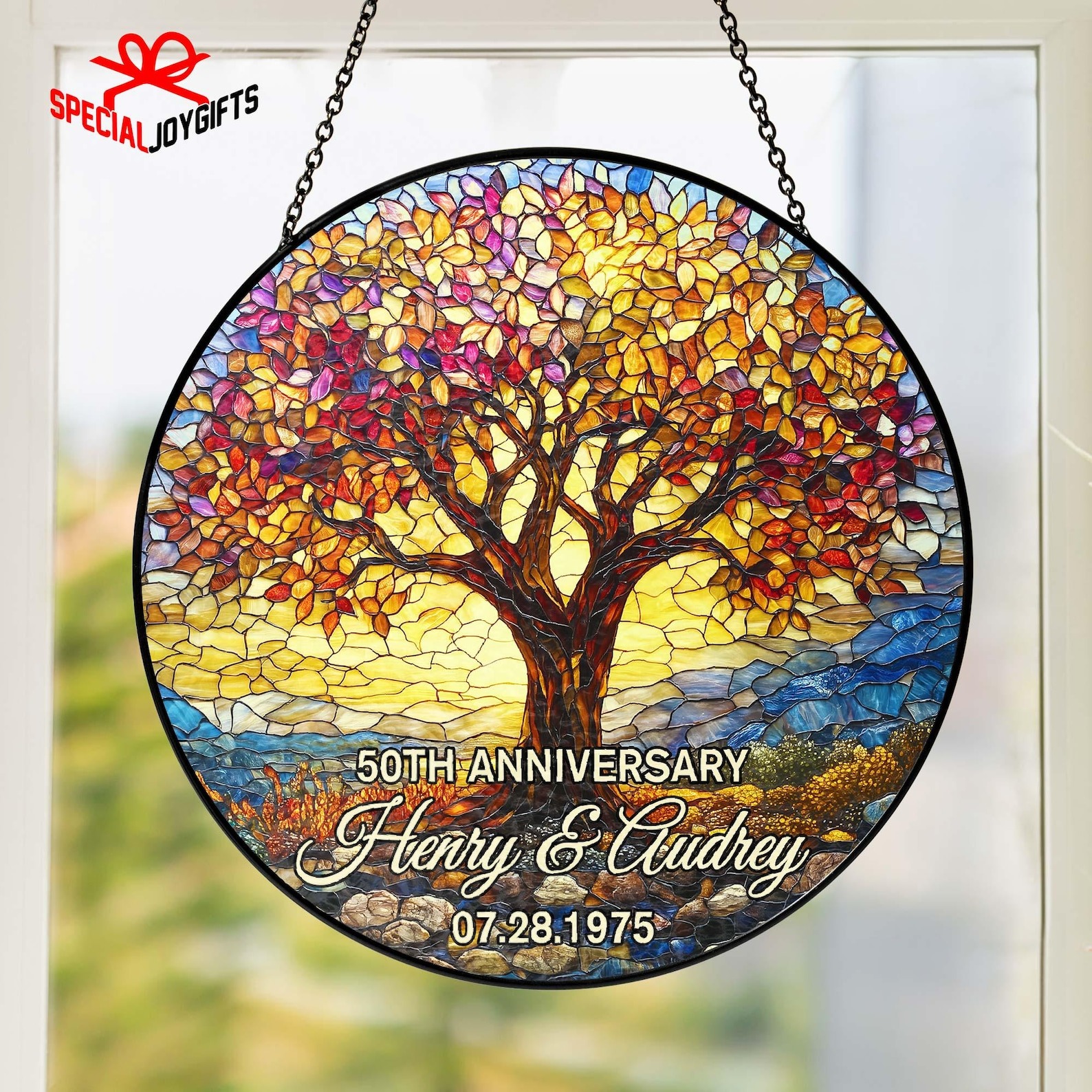 Hanging Design: Integrated hooks with a sleek black metal chain and a suction cup for easy installation in any window or space.