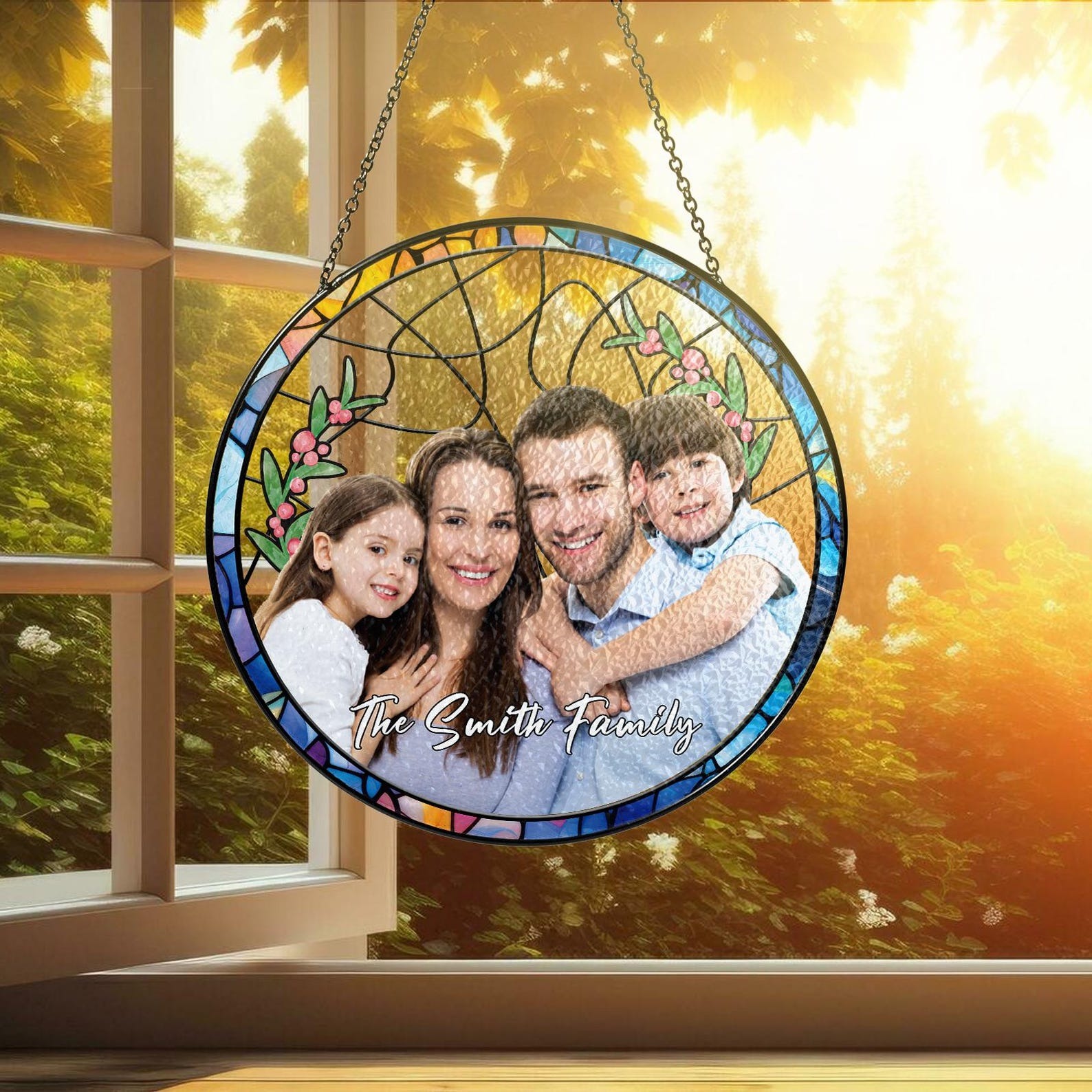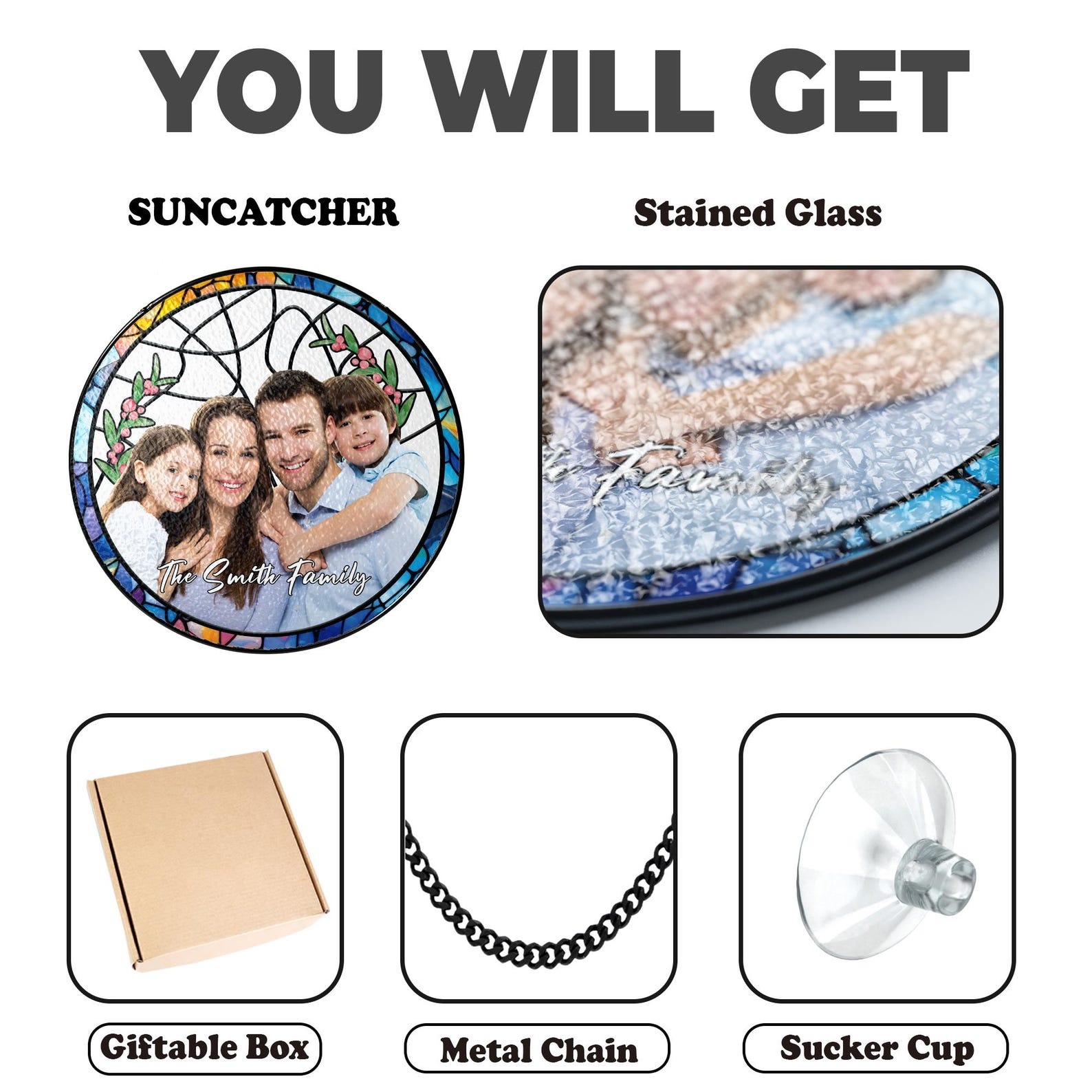 Custom Family Photo Stained Glass Suncatcher, Family Portrait Personalized, Family Suncatcher Couple Portrait Photo Stained Glass Suncatcher