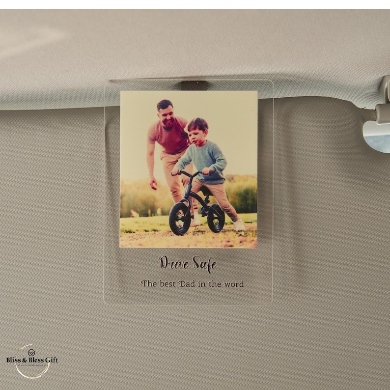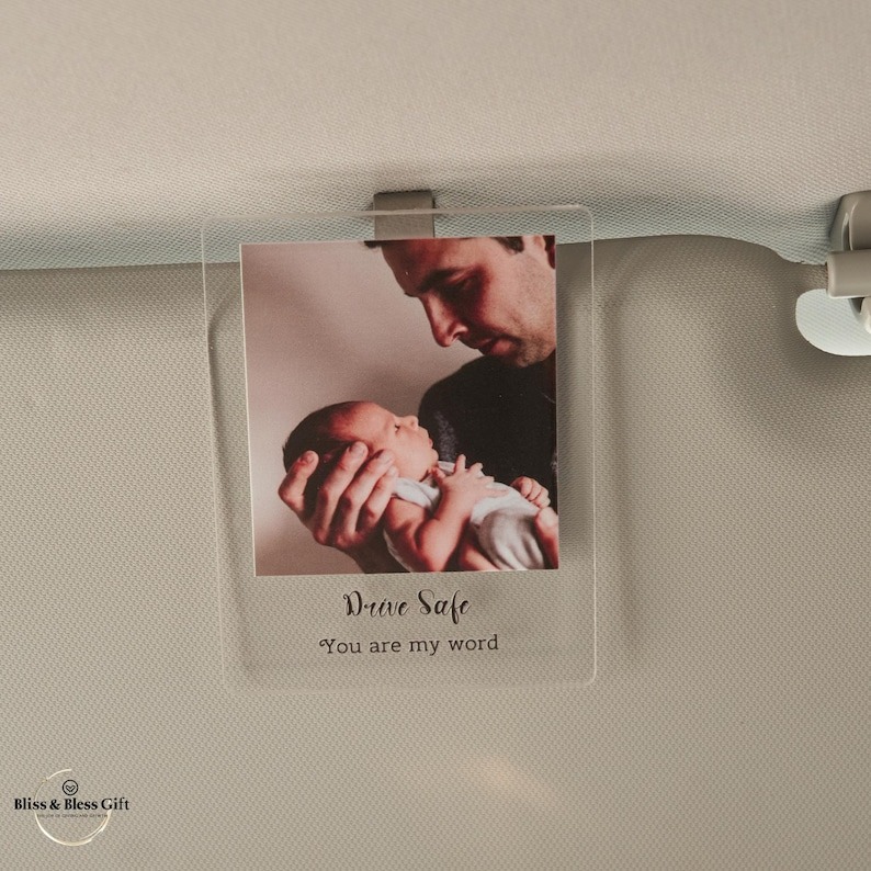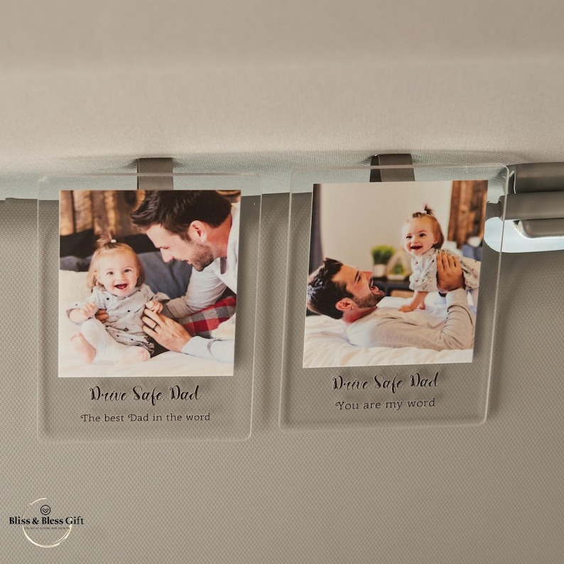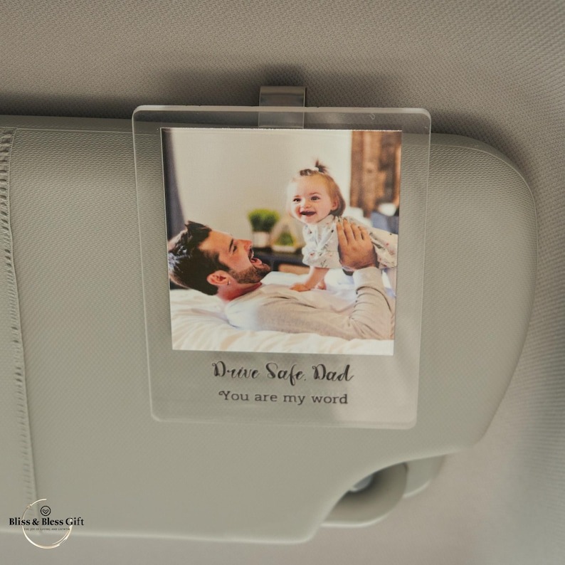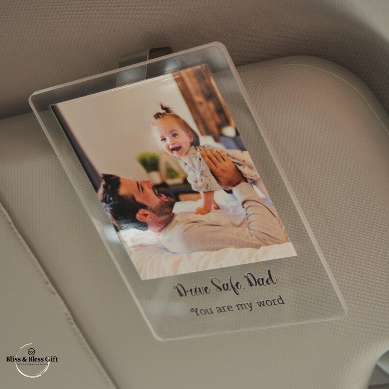 This mini acrylic frame comes with a clip on the back that easily attaches to your car visor, allowing Dad or Grandpa to carry a special memory with him every time he drives.