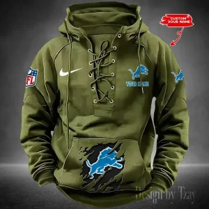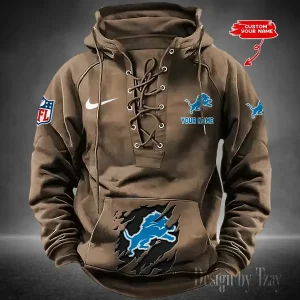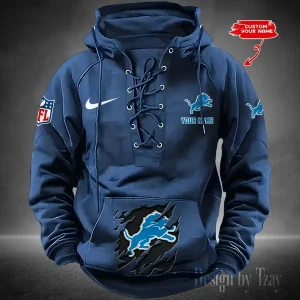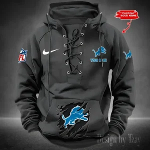 Detroit Lions Lace-Up Cross V-Neck Drawstring Hoodie