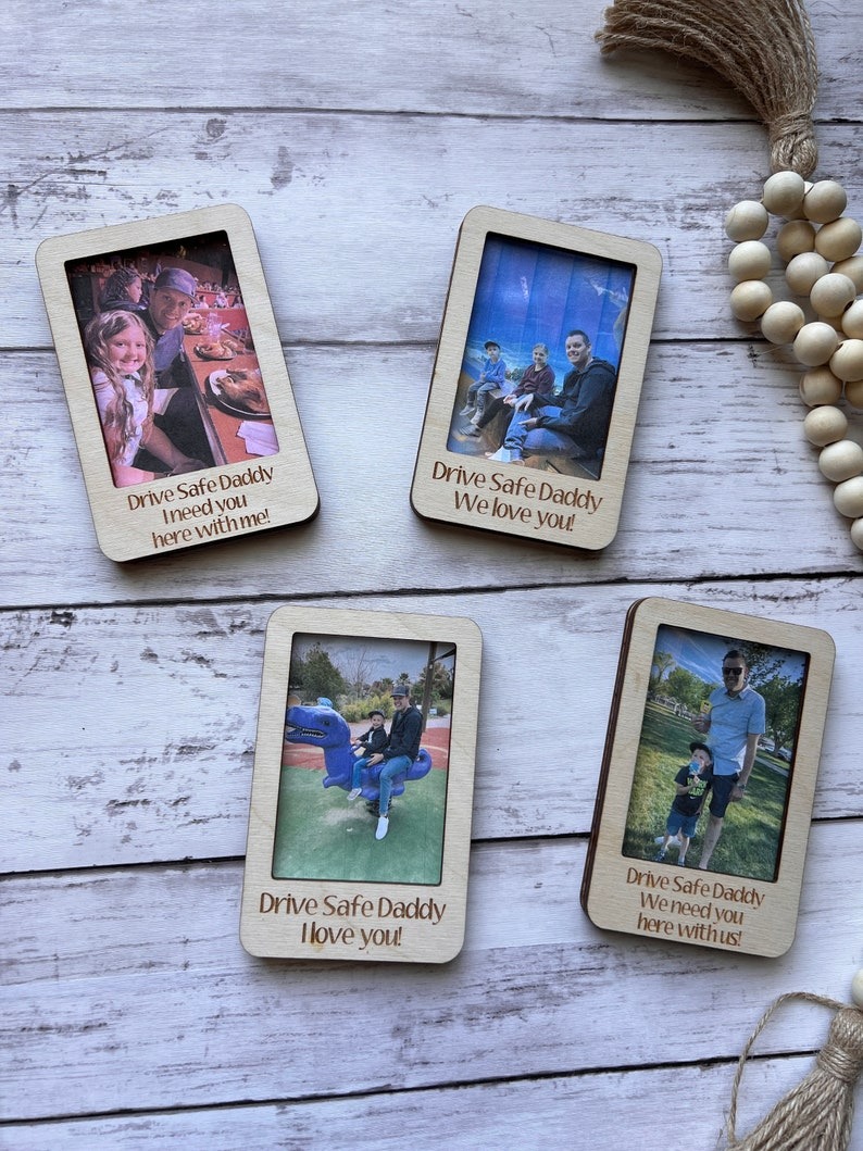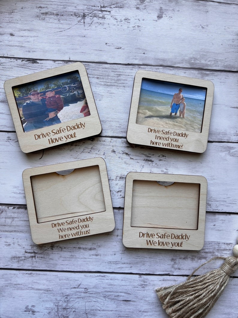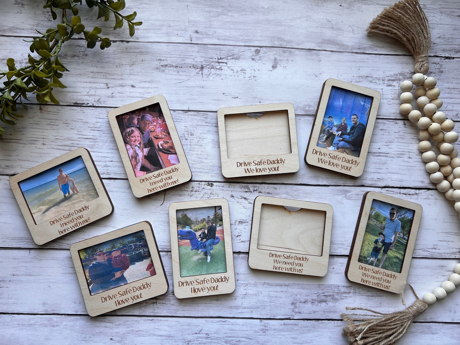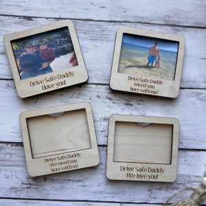 This mini acrylic frame comes with a clip on the back that easily attaches to your car visor, allowing Dad or Grandpa to carry a special memory with him every time he drives.