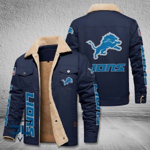 Detroit Lions Fleece Leather Jacket V3116