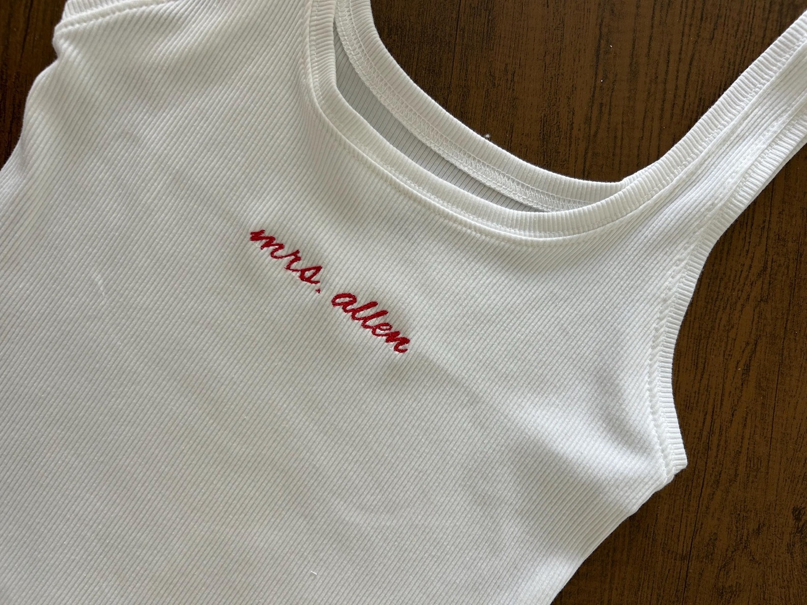 Order Your Custom Embroidered Crop Top Tank Today!***Please message me for a discount code if you are ordering more than 5 pieces 🤍