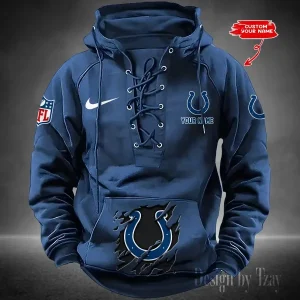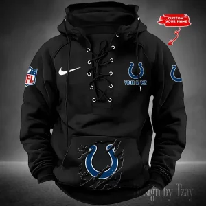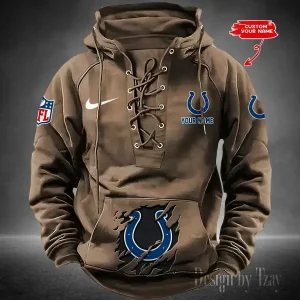 Indianapolis Colts Lace-Up Cross V-Neck Drawstring Hoodie