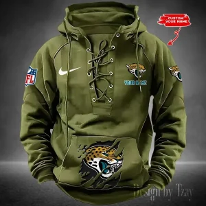 Jacksonville Jaguars Lace-Up Cross V-Neck Drawstring Hoodie
