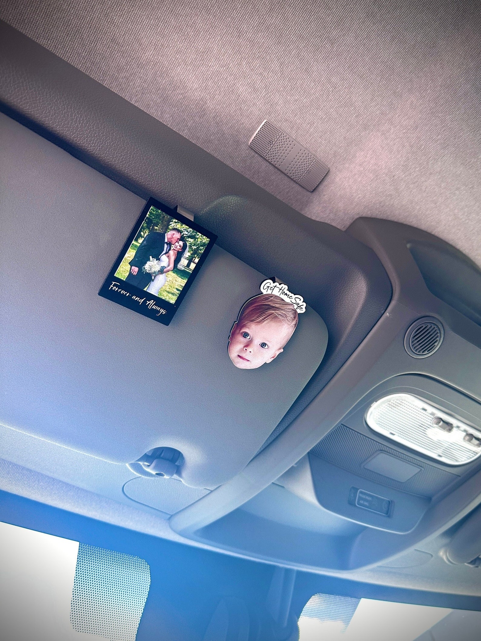 This mini acrylic frame comes with a clip on the back that easily attaches to your car visor, allowing Dad or Grandpa to carry a special memory with him every time he drives.