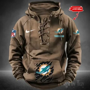 Miami Dolphins Lace-Up Cross V-Neck Drawstring Hoodie