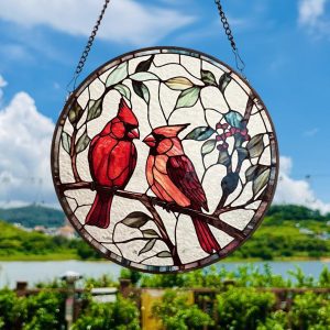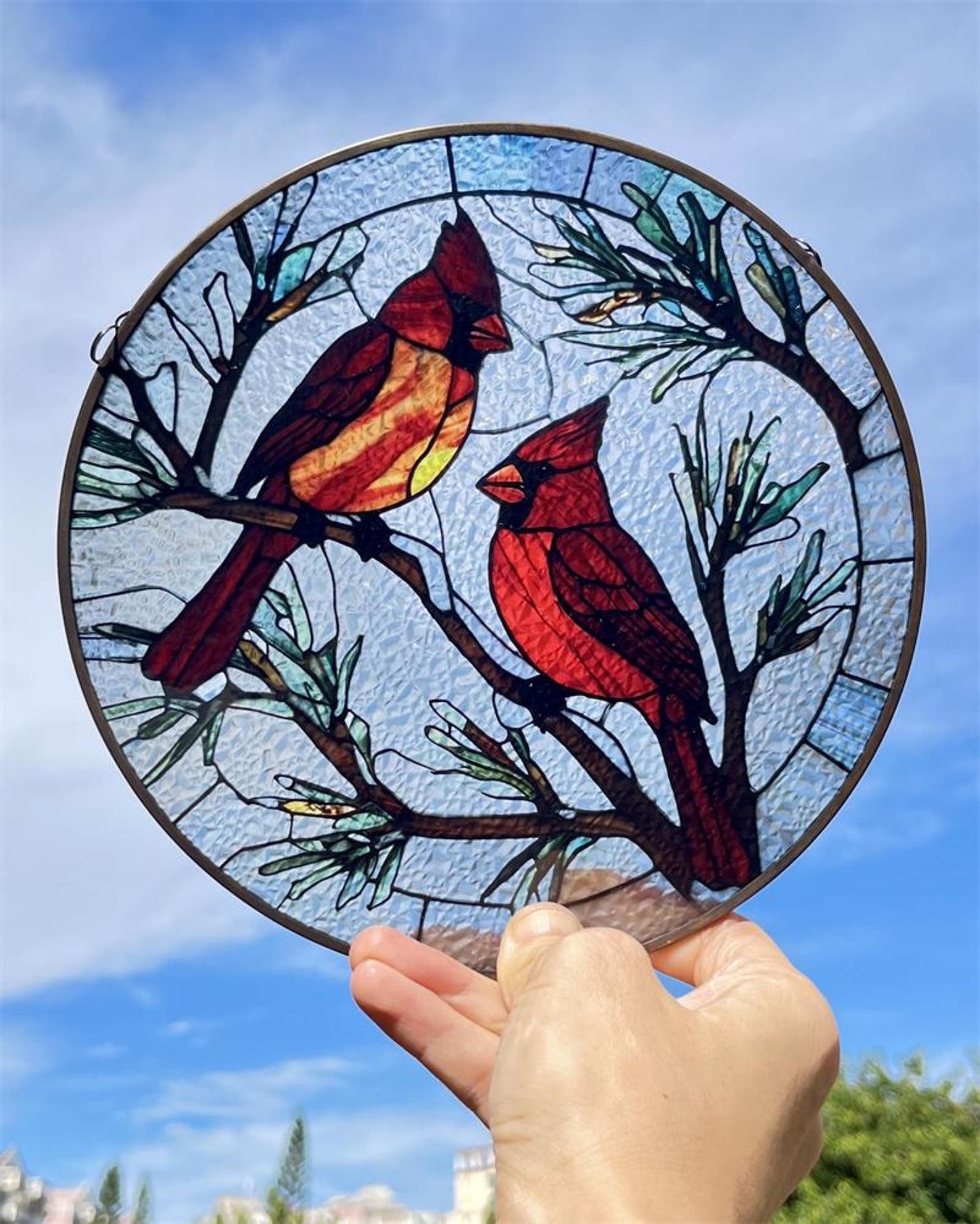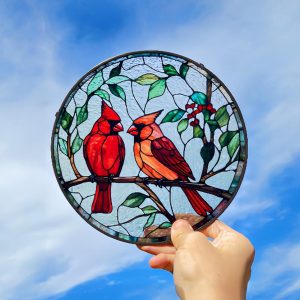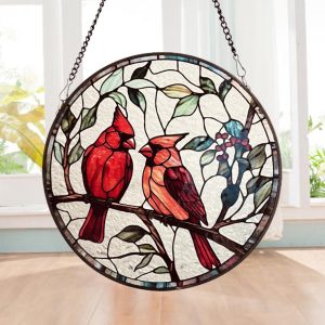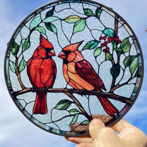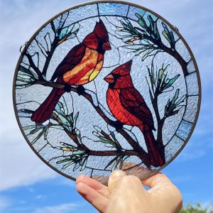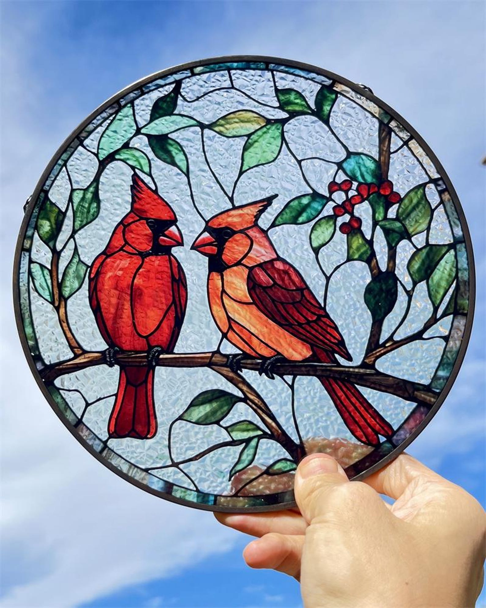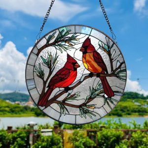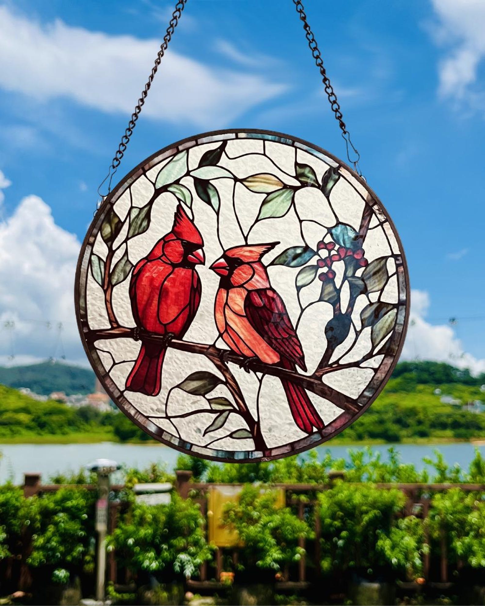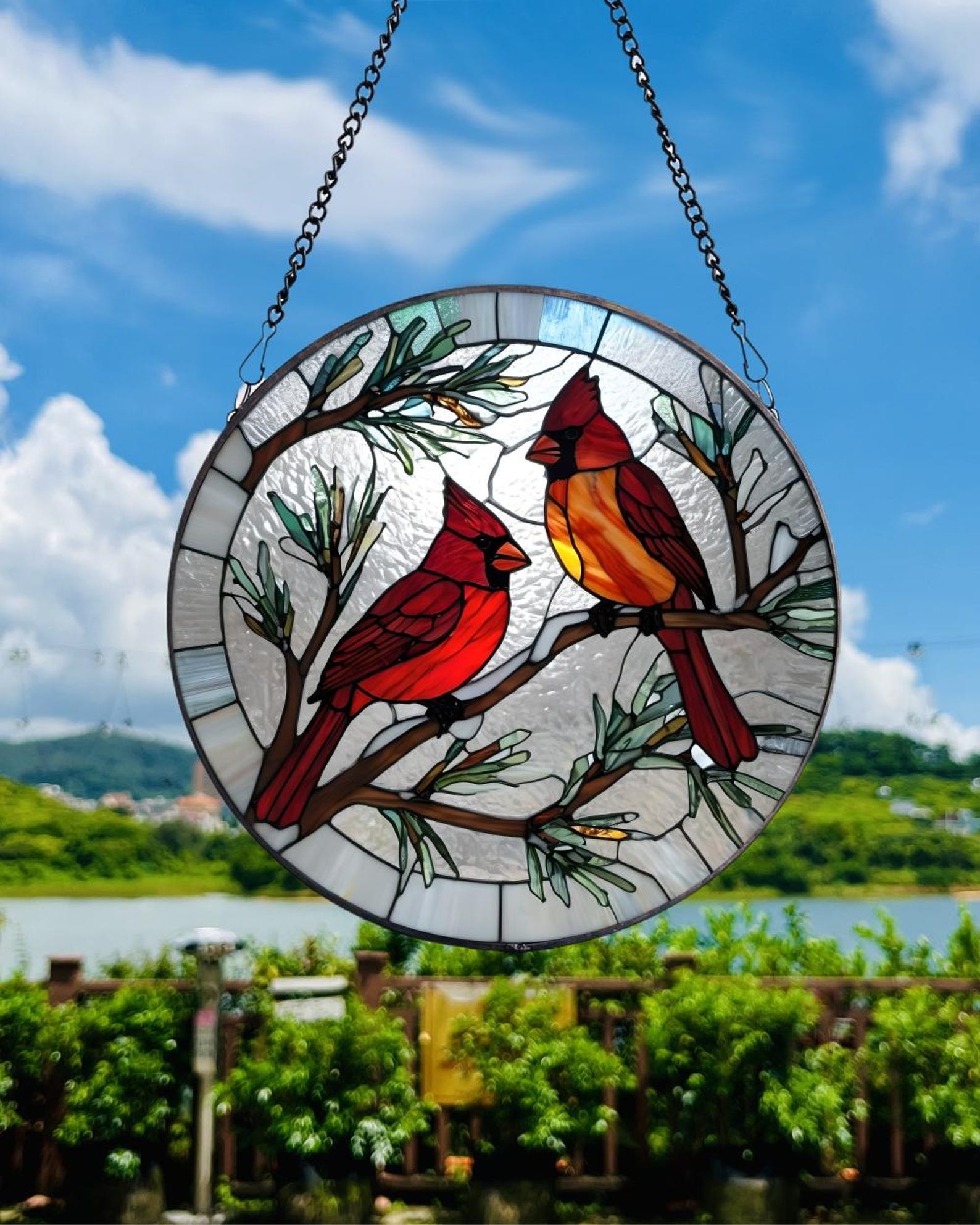 Northern Cardinals Stained Glass Suncatcher , Angelversary gift, Remembrance Gift, Condolence gift, loss of loved one gift
