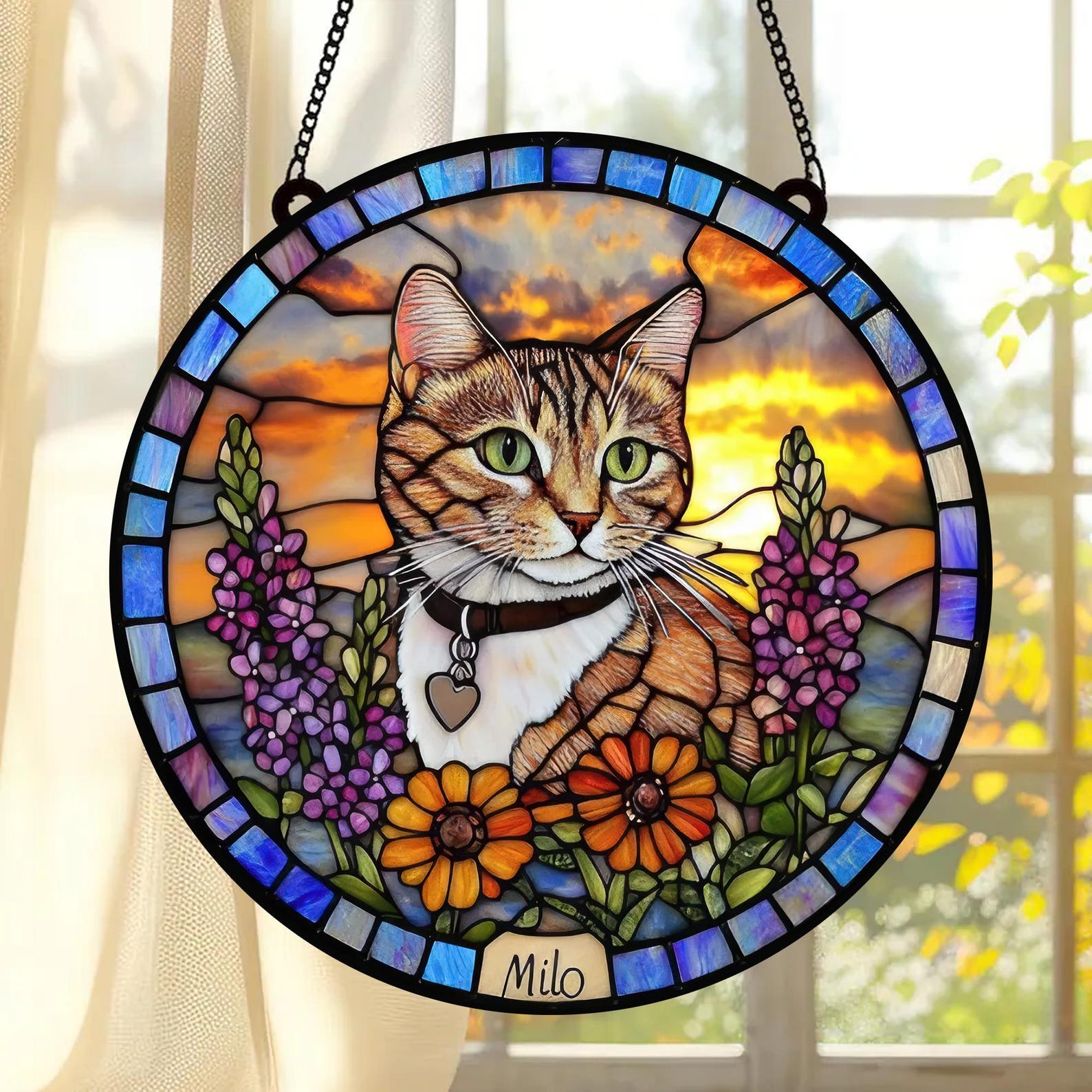 Personalized Cat Memorial Stained Glass, Loss of Pet Sympathy Gift, Cat With Name Suncatcher, Cat Suncatcher, Custom Pet Image Gift,LossCat