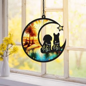 Hanging Design: Integrated hooks with a sleek black metal chain and a suction cup for easy installation in any window or space.