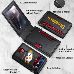 Pittsburgh Steelers – Football RFID Blocking Pop Up Card Holder, Fashion Card Case Wallet