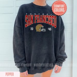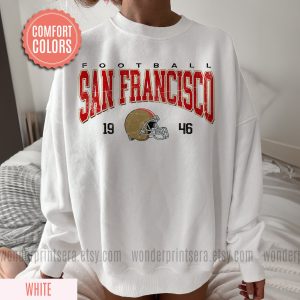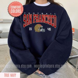 All San Francisco 49ers sweatshirts are unisex, classic fit. Please refer to the size chart in the listing photos for details. Easy measuring tip: Take your favorite shirt, lay it on a flat surface, and measure the width (armpit to armpit) and length (top to bottom)